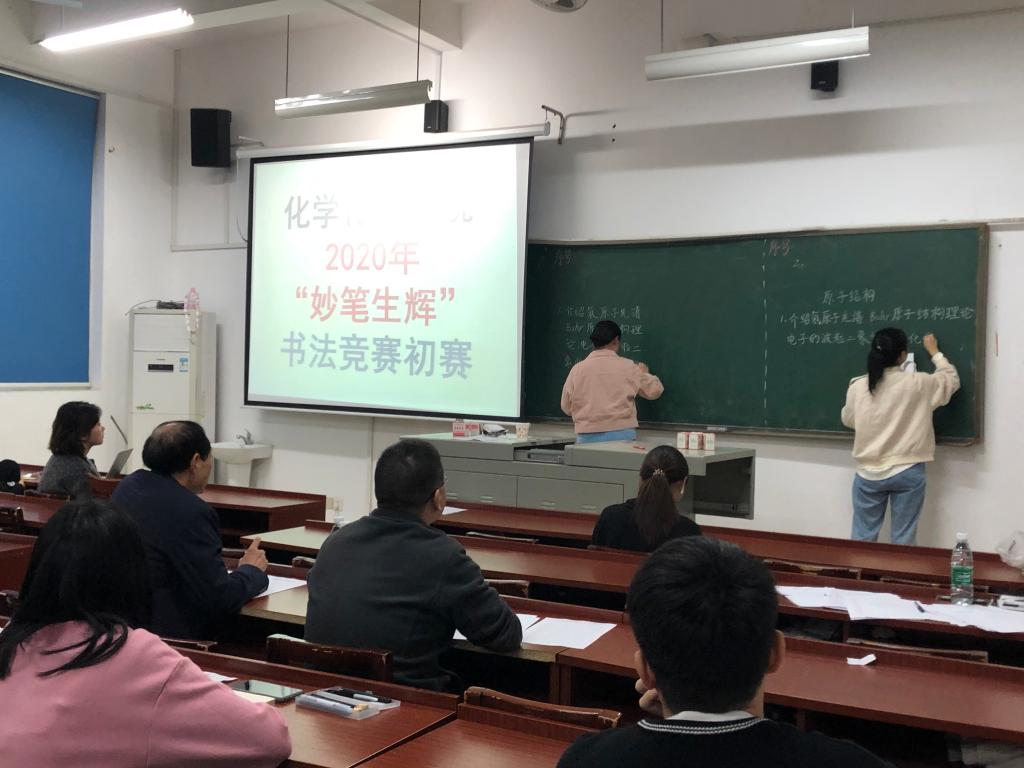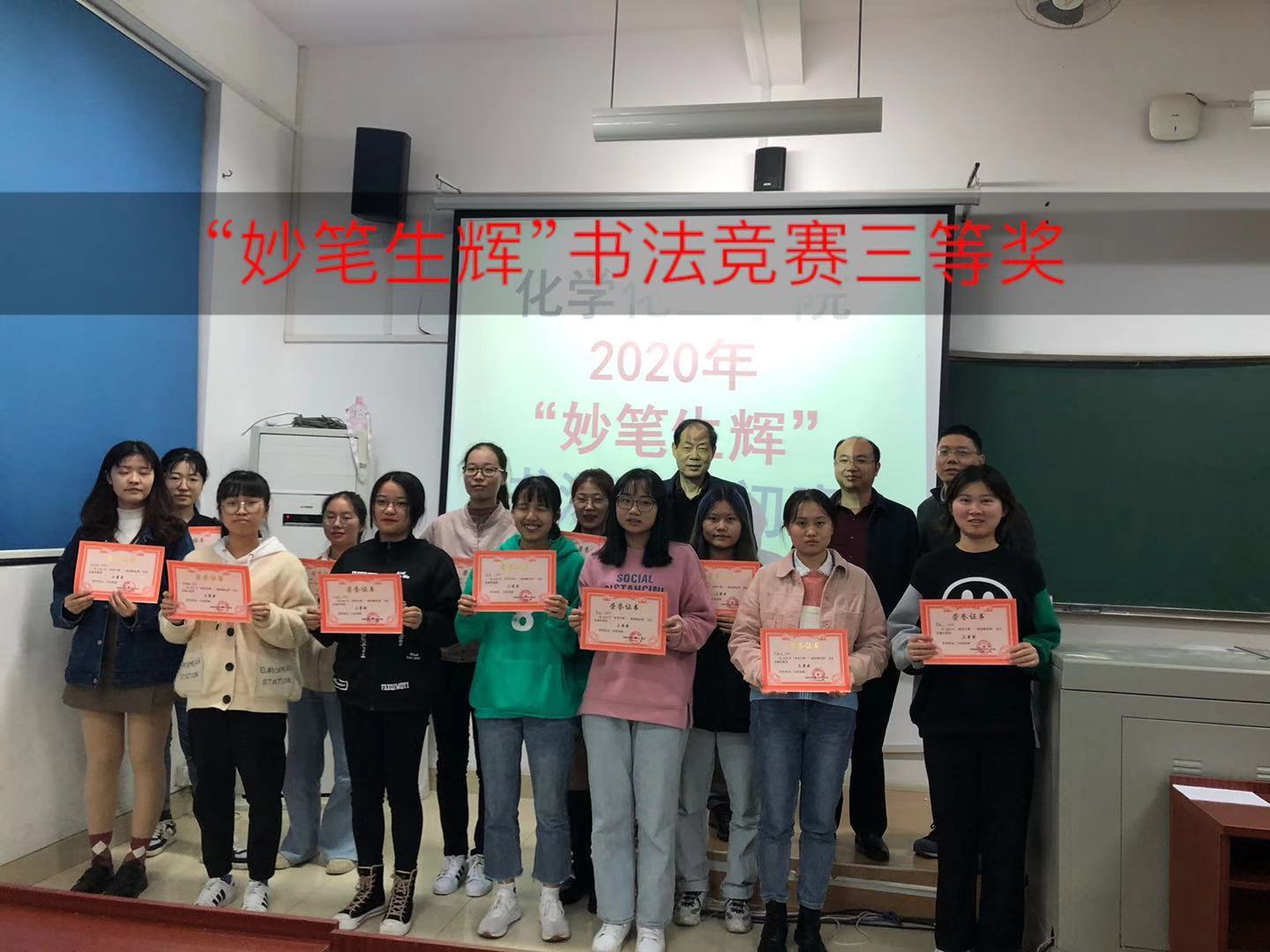 为规范学生的书写行为,稳固粉笔字、钢笔字等教学基本功,提高学生的书写水平,增强学生对中国汉字文化的了解,2020年11月20日晚,化学化工学院在化学楼217教室成功举办了“妙笔生辉”书法竞赛,由化工学院“三字一话”主讲教师肖小明教授、陈应庄副教授和曾佑林教授三位老师担任评委,共有30名学生参赛。