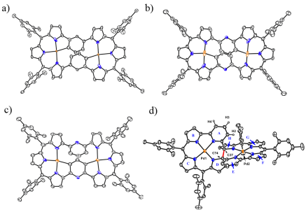 图2:a), b), c), d)分别为化合物14,15,16,17的晶体结构俯视图