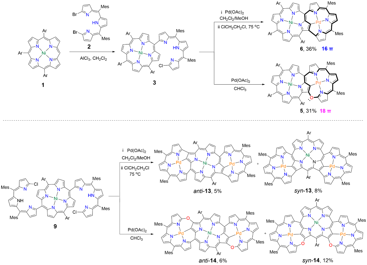 Synthesis of Pyrrole-Sharing Fused Porphyrinoid Hybrids by Post-fabrication of Ni(II) Porphyrins