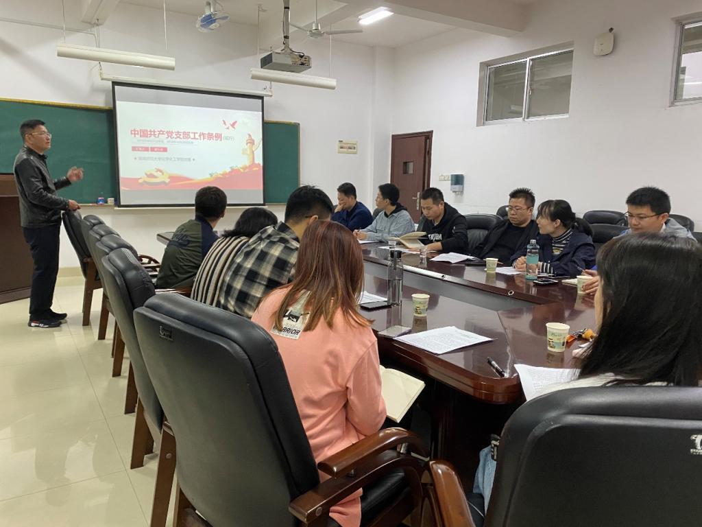 会议开始,院党委书记谭东波带来了《中国共产党支部工作条例(试行)》(以下简称《条例》)的专题党课。他首先介绍了《条例》出台的背景、意义及整体结构,其次他对《条例》的8个章节进行的重点解读,最后提出了贯彻和实践要求,要求各支部要抓好《条例》的宣传解读和学习培训,使各级党组织和广大党员深入领会《条例》精神,全面掌握《条例》内容,增强贯彻执行《条例》的思想自觉和行动自觉。