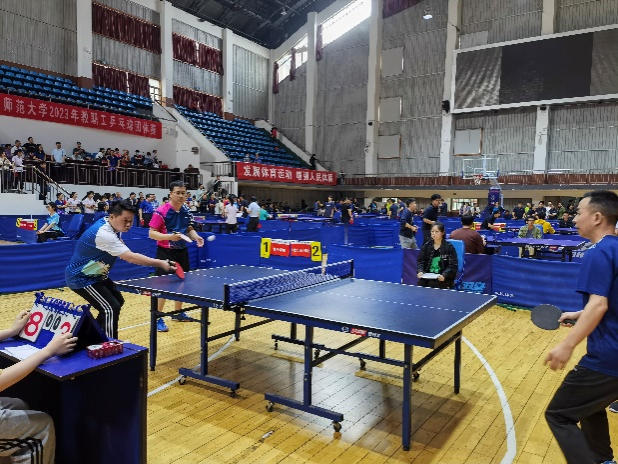 5月13日至14日,2023年太阳集团电子游戏教职工乒乓球团体赛在学校南院体育馆举行。此次比赛共31支代表队、426名运动员参加。