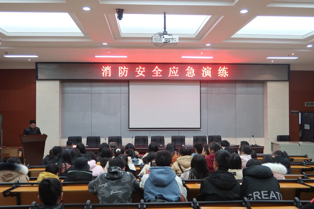 演练首先请杨东升讲解了消防器材的操作方法和注意事项,随后由谭东波副院长传达全省学校安全工作视频会议精神,最后全体人员实地现场演练。