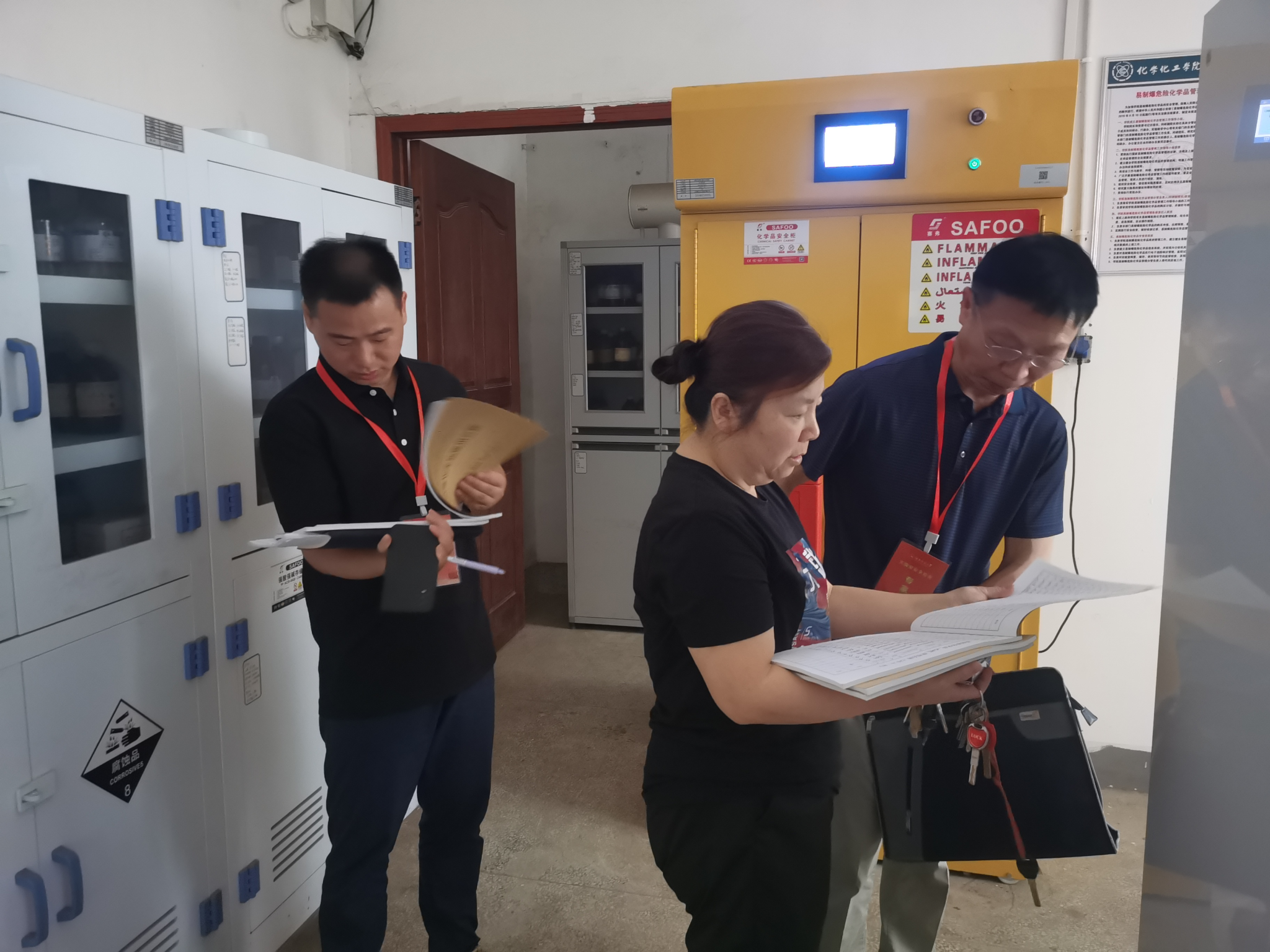 周子虬汇报了化学化工学院危险化学品和危险废弃物安全管理等情况。随后,检查组对学院危险化学品仓库和实验室危化品的管理进行了抽查。