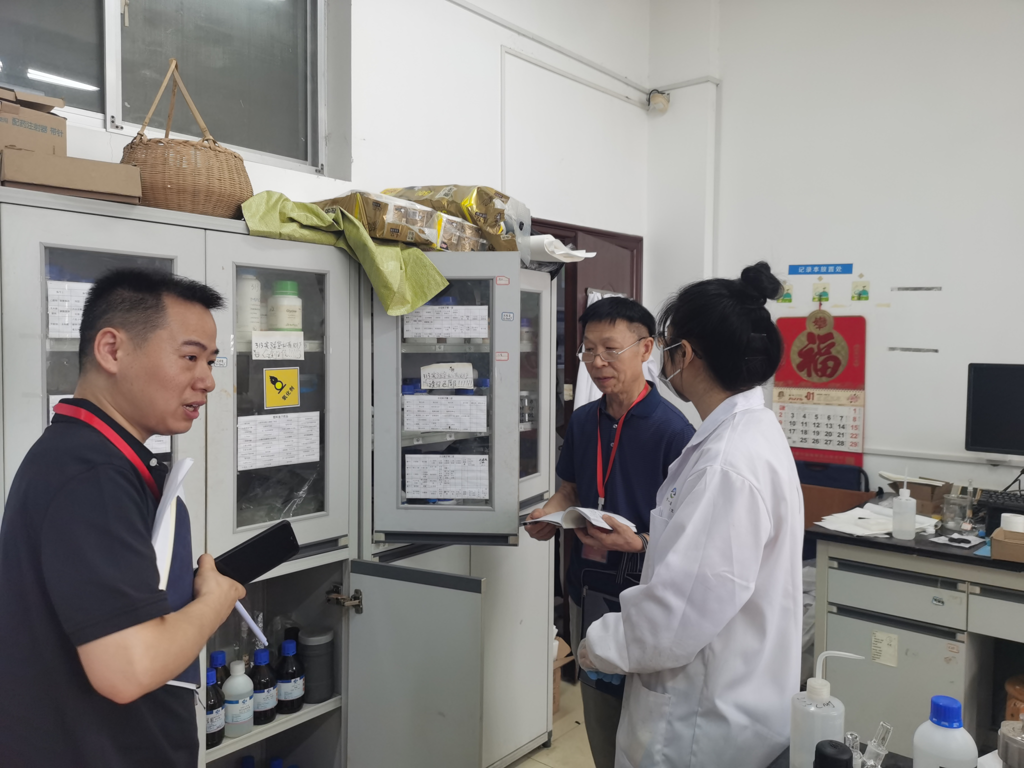 6月15日上午,校资实处实验室安全小组段星星、何红运老师来我院开展实验室专项检查。化学化工学院“化学生物学及中药分析教育部重点实验室”专职副主任周子虬陪同。