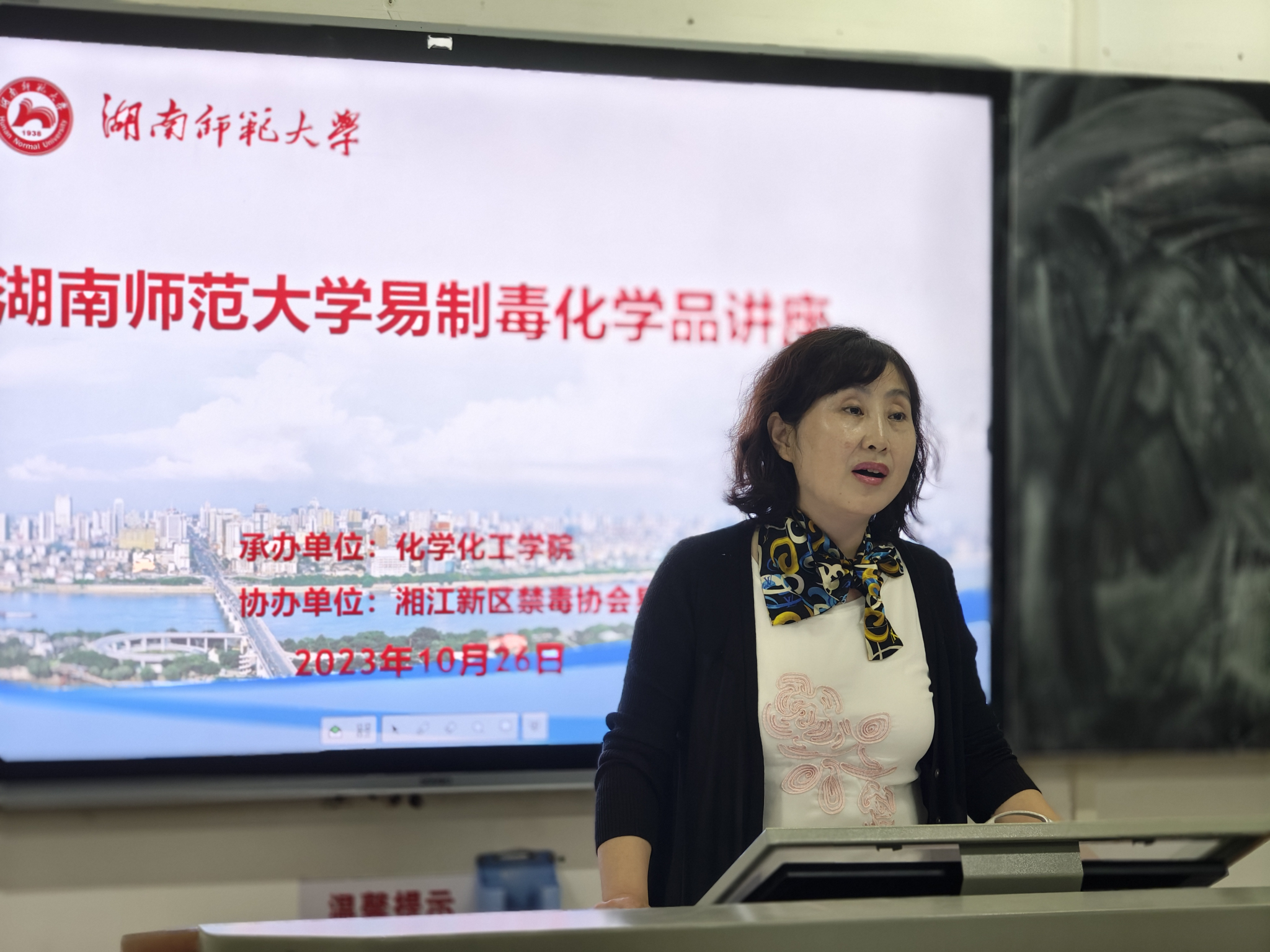 为进一步做好易制毒化学品安全知识宣传教育工作,全面提高我院师生使用易制毒化学品时的禁毒防毒意识,10月26日下午,化学化工学院在化学楼117教室开展易制毒化学品安全知识讲座,讲座由湘江新区禁毒协会易制毒分会副会长方鸿雁主讲,化学化工学院教育部重点实验室专职副主任周子虬出席并主持讲座。