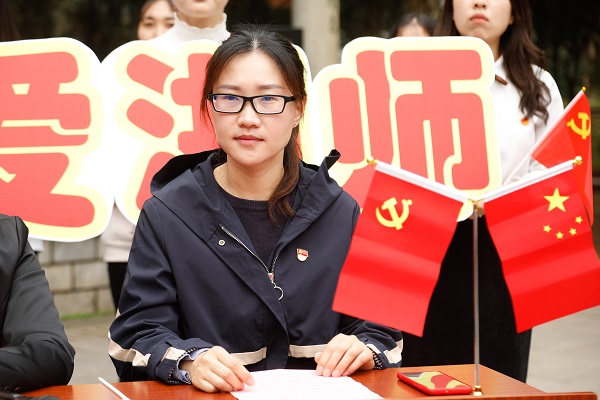 支教学生代表毕玉作为西部计划志愿者赴湘西州凤凰县进行了为期一年的支教活动,始终坚守“仁爱精勤”的师道初心。学生干部代表宗霞表示作为青年党员,她会在学习工作中始终保持入党初心,贡献青春力量,勇挑时代重担。