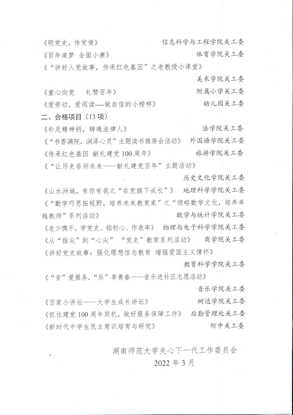 为庆祝建党100周年,加强大学生思想政治教育工作,促进青少年健康成长、成才,校关工委以“讲好入党故事,传承红色基因”为主题开展创新关工委工作,校关工委考评出12个优秀项目,13个合格项目。化工院关工委以《聚焦十四五规划庆贺建党100周年之“坐拥麓山·心怀天下”系列活动》参加活动,并被评为优秀项目。
