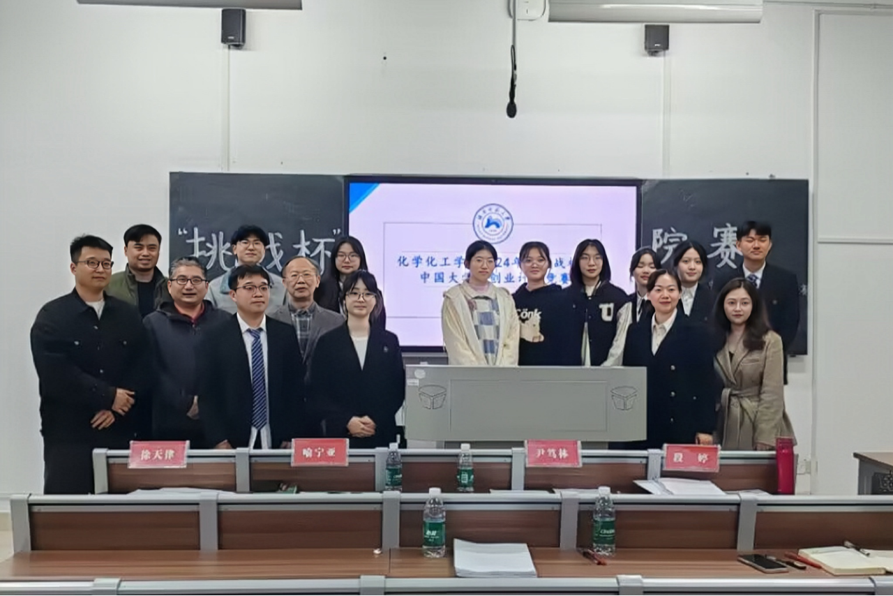 (通讯员 王菲)3月12日中午12时30分,化学化工学院团委青年创新创业部在化工院117教室举办“挑战杯”院赛。此次比赛到场的评委有:化工院党委副书记段婷老师,化工院原院长、政协十一届湖南省委员会委员、石化新材料与资源精细利用国家地方联合工程实验室创始主任尹笃林教授,石化新材料与资源精细利用国家地方联合工程实验室副主任喻宁亚教授,青年教师兼职辅导员、博士徐天律老师,化工院团委书记张婧老师,化工院23级辅导员唐健清老师。此次共有四支参赛队伍,各参赛队伍全方位展现自己的参赛成果。