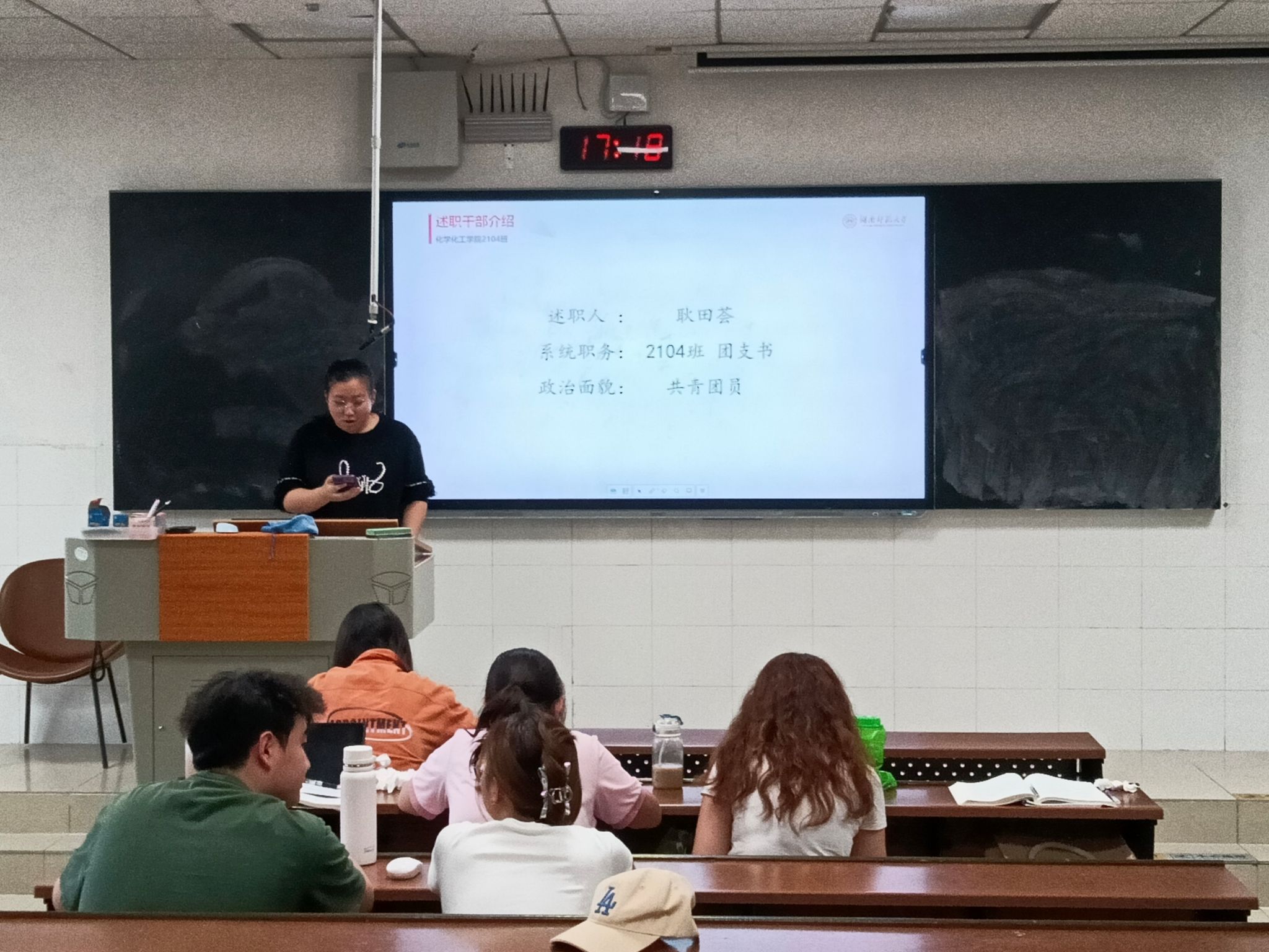 (通讯员 王宇杨)为大力推进从严治团,加强学生干部队伍建设,进一步增强学生干部的自我管理、自我教育、自我服务意识,提升其先进性和光荣感,化学化工学院2104班积极响应学校、学院团委,于4月15日下午17时开展班级学生干部述职评议大会,会议由班长王宇杨主持。