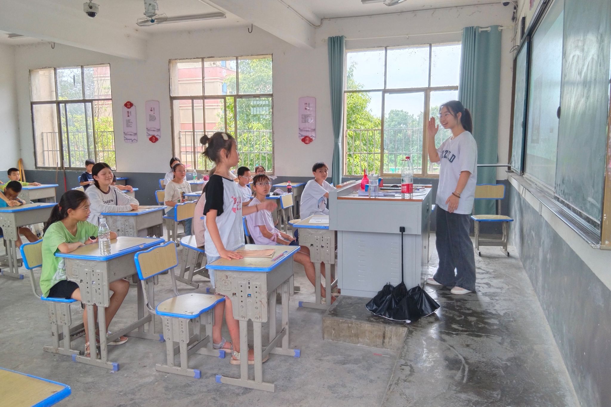 开学典礼部分,由主持人傅其圣致开幕词,队长刘诗晗、副队长范俊、左美玲、学生代表石景妍依次上台发言,表达了各自对三下乡的理解和期许。傅其圣介绍各任课老师,并由左美玲宣布分班情况,交由一班班主任欧阳轩杭及二班班主任叶彬带领同学们到各自班级开展“破冰行动”主题班会。