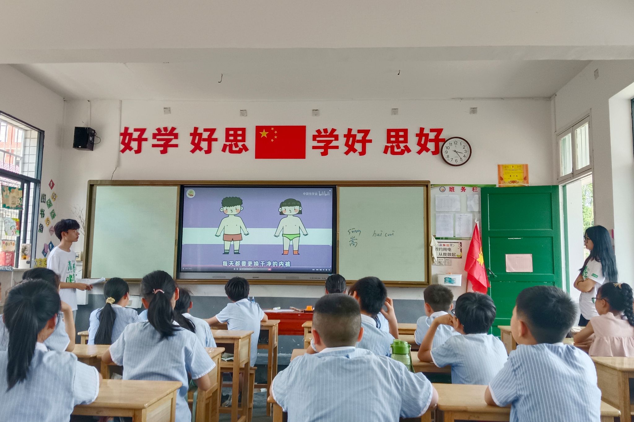 (通讯员 刘文琦 王思雨)7月16日15时20分,太阳集团电子游戏赴益阳市安化县暑期社会实践团——“星火接力,丹心筑梦”队在马路镇完全小学夏令营五年级的全体学生中开展青春教育讲堂活动。活动由实践团调研组组员孙金鹏和实践团调研组组员李艳泽主持。