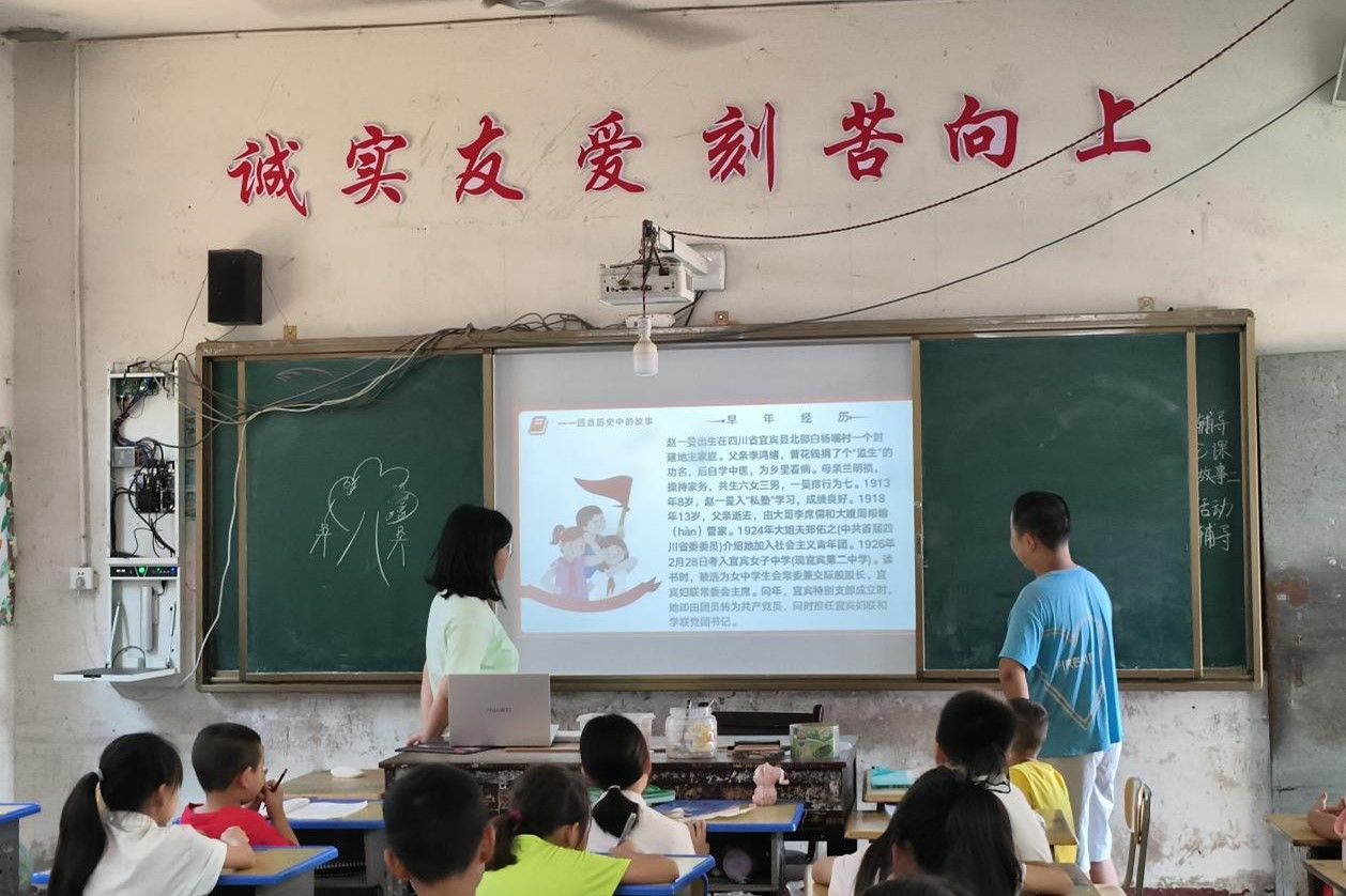 此次活动由实践团成员胡君瑶主讲,主要围绕赵一曼的革命生涯、红色精神、后世评价三个方面展开。在活动中,胡君瑶采用通俗易懂的语言和丰富的图文资料,向学生详细介绍了赵一曼。在互动环节,学生也积极地参与,他们大声的朗读出赵一曼的故事,并分享自己对赵一曼革命精神和品质的看法,这不仅有助于加深学生对赵一曼的理解和认识,还有助于学生形成和巩固正确的价值观。活动最后,胡君瑶向学生提出“革命永记,爱我中华”的口号,勉励学生好好学习,为实现中华民族伟大复兴的中国梦贡献自己的一份力量。