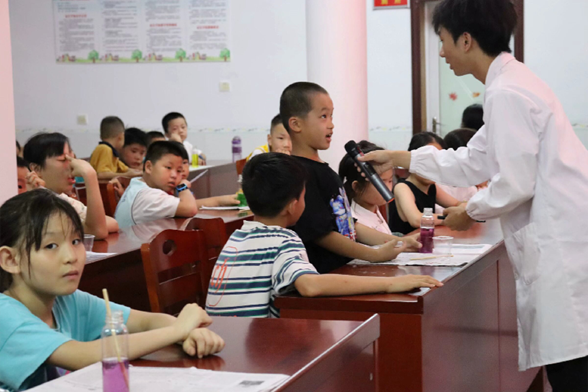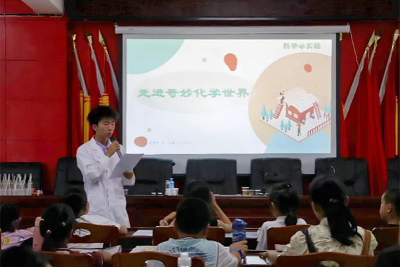 (通讯员 周倩妮 曾胡杨)为激发乡村孩童对化学的浓厚兴趣,培养其基础化学实验素养,7月14日下午,化学化工学院“麓山青年”社会实践团在墙背村报告厅组织当地中小学生进行趣味化学实验课程学习。此次课程由“麓山青年”副队长李岚彪主讲,另有几名助教协助活动开展。