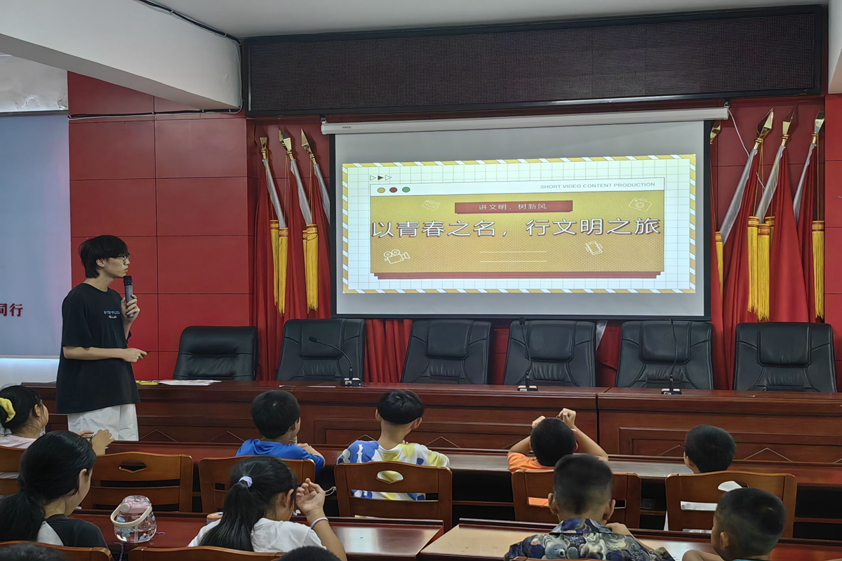 (通讯员 游奥 李岚彪)为了培养乡村儿童良好的日常习惯和道德素养,7月25日下午,化学化工学院“麓山青年“暑期实践团组织当地中小学生在墙背村报告厅开展”以青春之名,行文明之旅“宣讲课堂,向同学们介绍文明行为,引导同学们做文明人,行文明事。此次课程由”麓山青年“教学组游奥主讲。