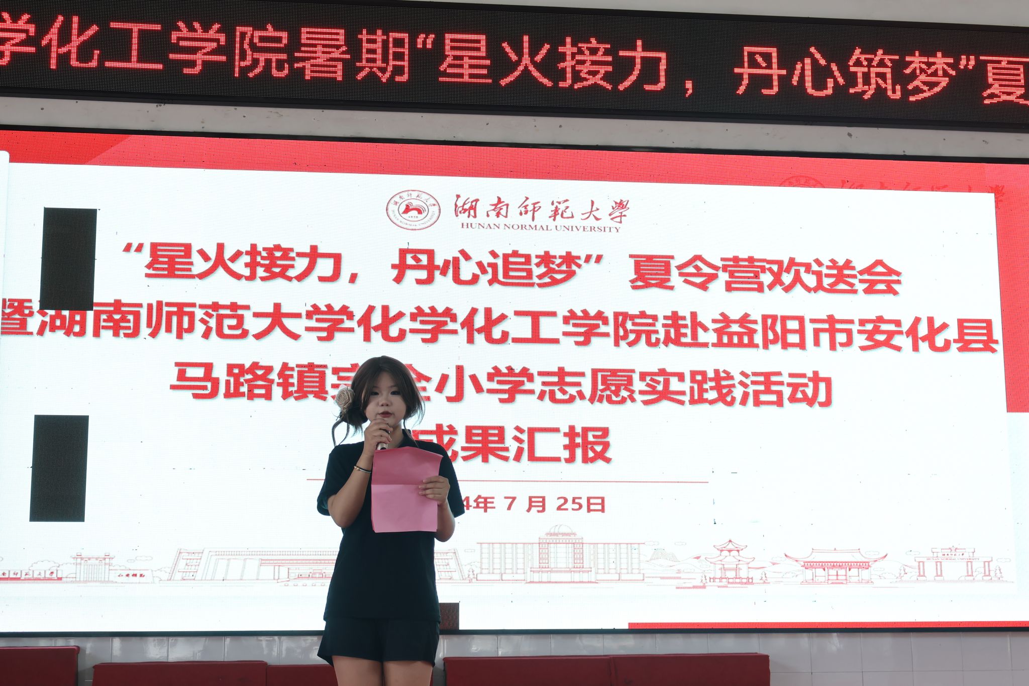 (通讯员 刘文琦 李琴辉)7月25日下午,化学化工学院赴益阳市安化县暑期社会实践团——“星火接力,丹心筑梦”队于马路镇完全小学组织进行了夏令营成果汇报。此次活动由实践团全体成员组织安排,马路镇完全小学参加夏令营的全体学生参与其中。