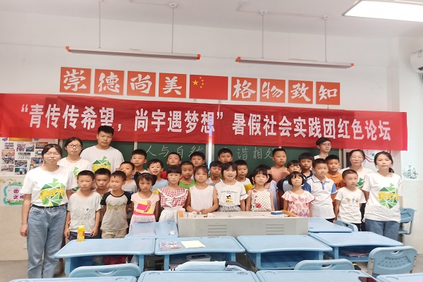 (通讯员 李思琪)为帮助学生形成良好的环保意识,了解到人与自然和平相处的重要性。7月26日上午9时整,我校化学化工学院青年传媒中心赴湖南省常宁市尚宇学校暑期社会实践团开展第一次红色论坛,实践团成员蓝杨浚主持此次活动。