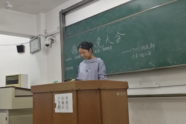(通讯员 黎敏)9月12日上午9时50分,化学化工学院1701班于理学院220教室召开了推优入党会议。此次会议由团支书吕世玲组织,参与对象为1701班全体成员。