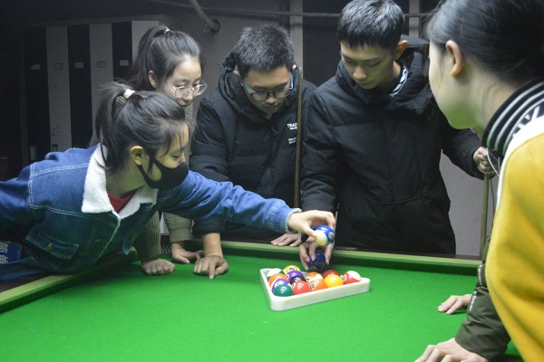 (通讯员 杨凯琪)12月15日上午台球社在9420台球会所开展了“台球第一课”社团活动,此次活动由台球社团支书周琪琪组织,全体理事及部分会员参加此次活动。