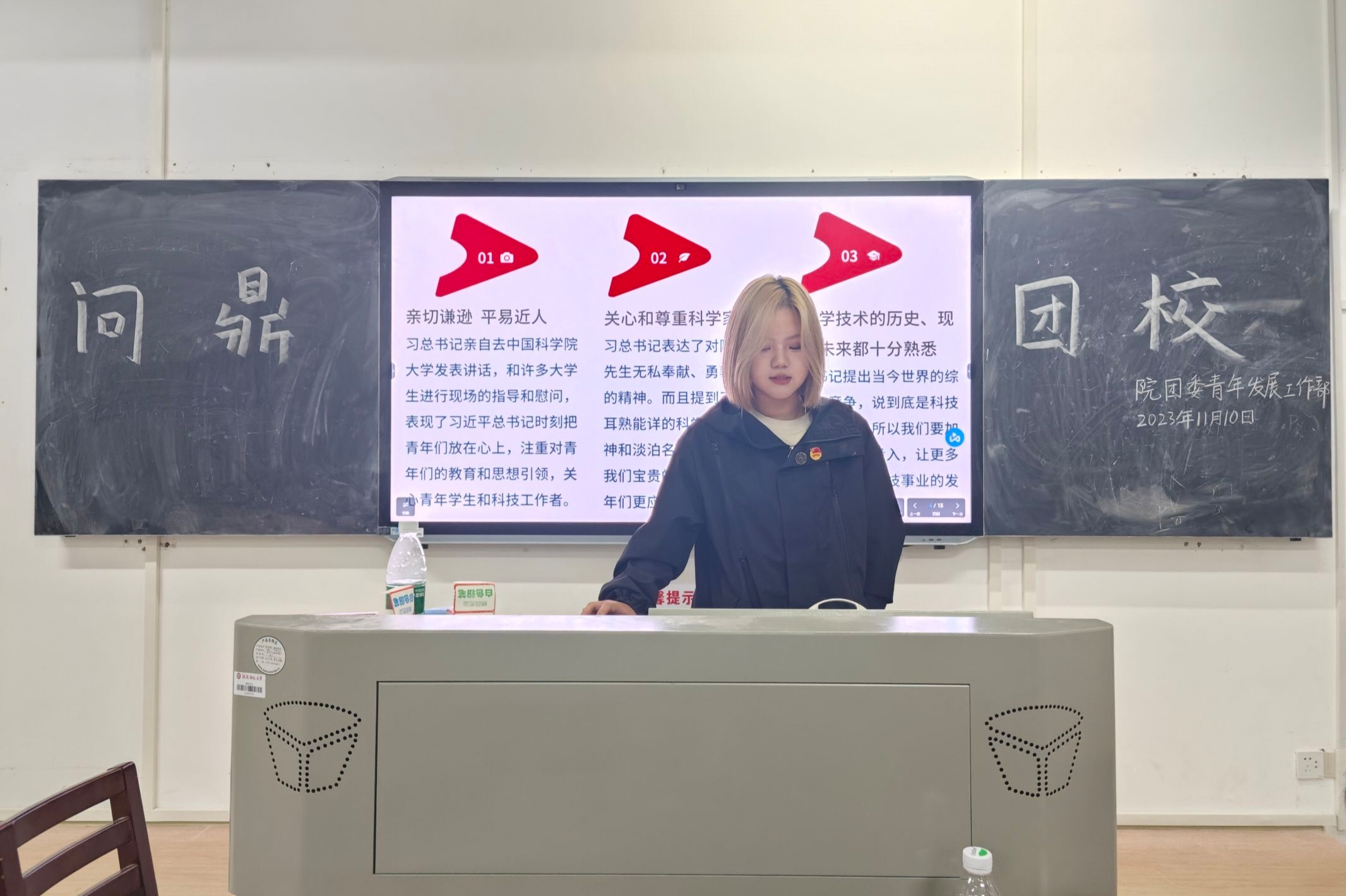 (通讯员 张雪怡)11月10日中午12时30分,化学化工学院第十四届“问鼎”团校第一期理论学习班第三课于化工楼117教室召开。2023级辅导员唐健清出席此次活动,第十四届“问鼎”团校全体学员以及院团委青年发展工作部全体成员参加此次活动。“问鼎”团校成员积极参与到第三课中学习,认真听讲、分享学习成果。
