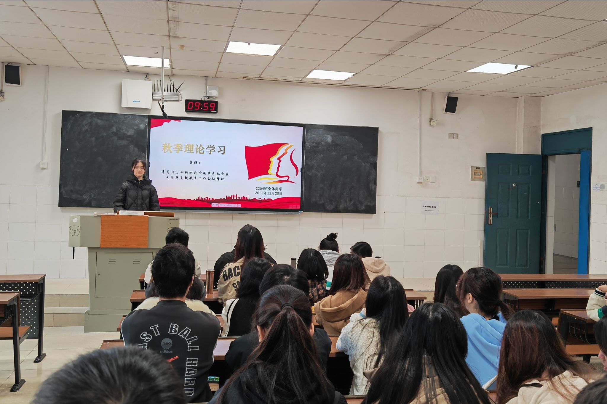 (通讯员 刘桢)11月20日上午,为深入学习贯彻学习贯彻习近平新时代中国特色社会主义思想主题教育工作会议精神,化学化工学院2204班于至善楼103教室开展秋季理论学习活动。2204班全体同学参与此次活动。