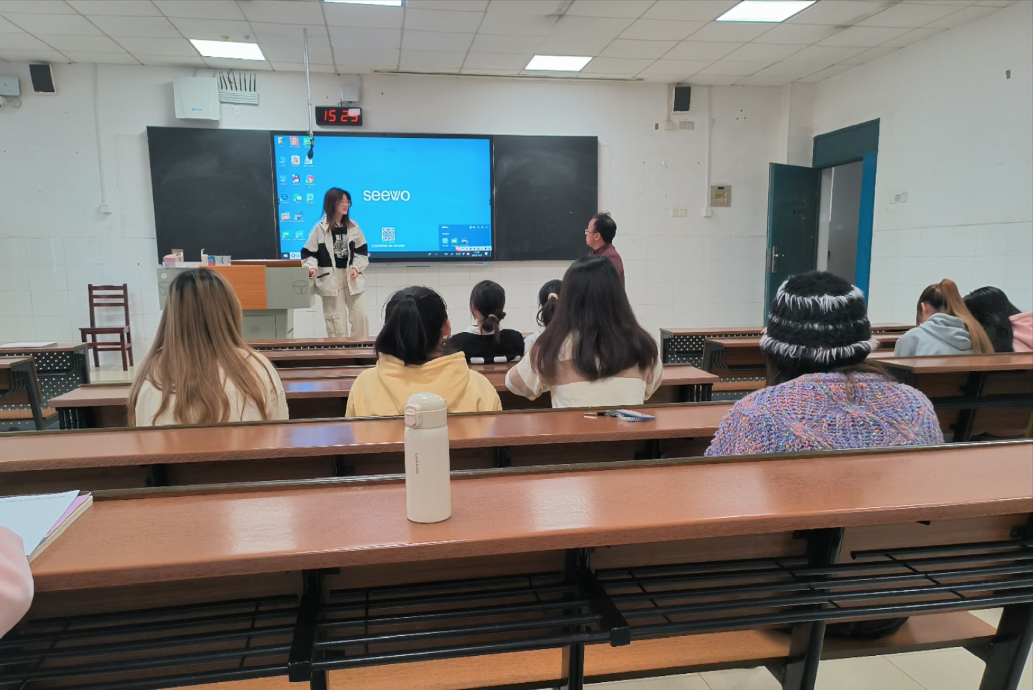 班导师交流会由班长吴晰睿主持。班导师尹鹏给同学们讲述了自己的学习经历和研究方向,分享了一些关于学习和生活的建议,并解答了部分同学提出的关于考研,就业以及人生长远规划的问题。尹鹏老师特别强调,青春是用来奋斗的,大学生一定要明确自己的目标,并为之不懈努力,实现自己的个人价值。最后,尹鹏老师重新认识了一遍全班同学,表示会切实了解同学们的学习生活情况,在下一次交流会中更好地解决同学们学习生活中遇到的问题,并欢迎同学前来咨询各种学习生活等方面的问题。