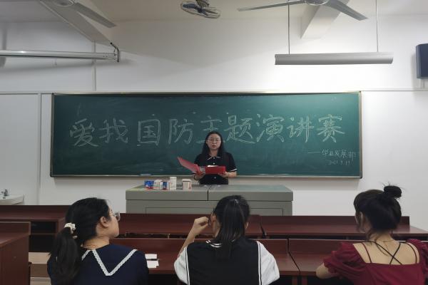 (通讯员 唐奕)9月19日下午19时,化学化工学院学生会学业发展部在化工楼217教室开展了“爱我国防”主题演讲院级选拔赛。