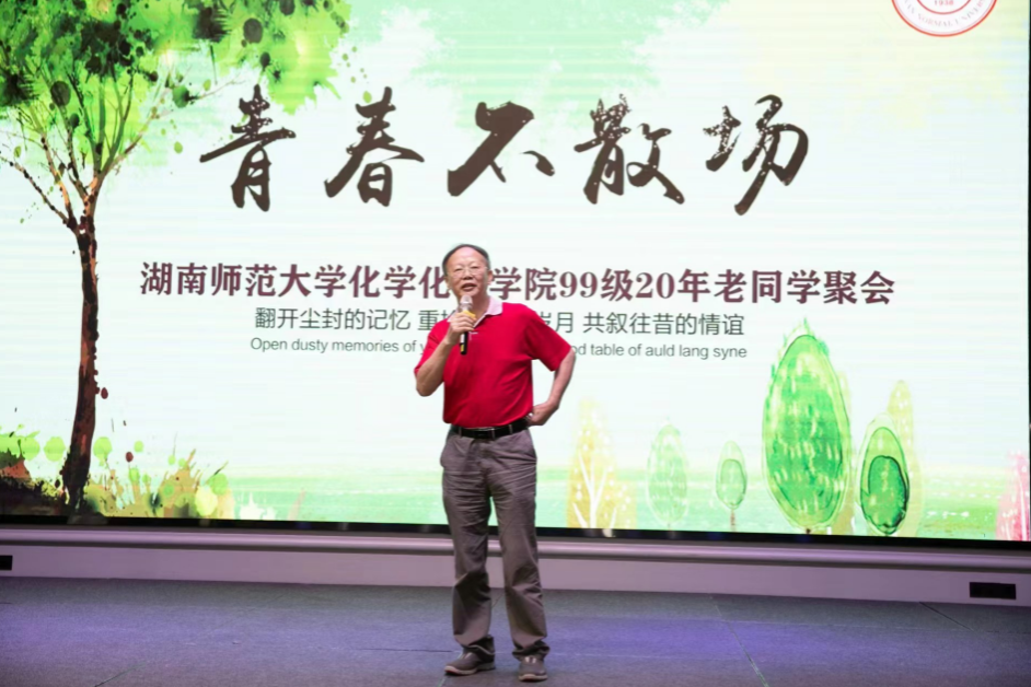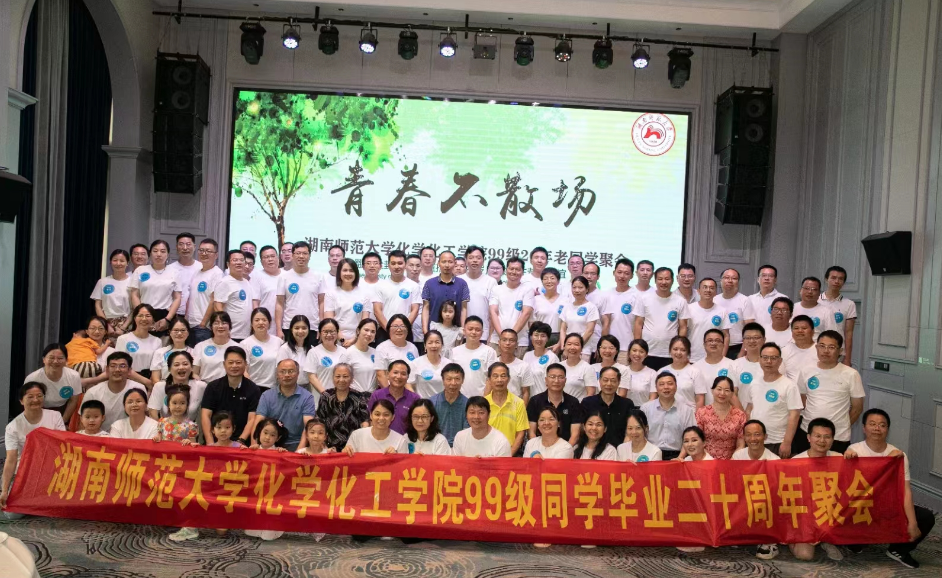 7月15日,太阳集团电子游戏1999级校友在长沙举办以“青春不散场”为主题的毕业二十周年聚会。校机关党委副书记(原化学化工学院党委副书记)彭建国,化学化工学院党委书记谭东波,副书记段婷,原党委书记易理国,化学化工学院原院长尹笃林,原副院长肖小明,99级校友在校期间的部分授课教师出席聚会。聚会由99级1班校友李志华、7班校友田耘主持。