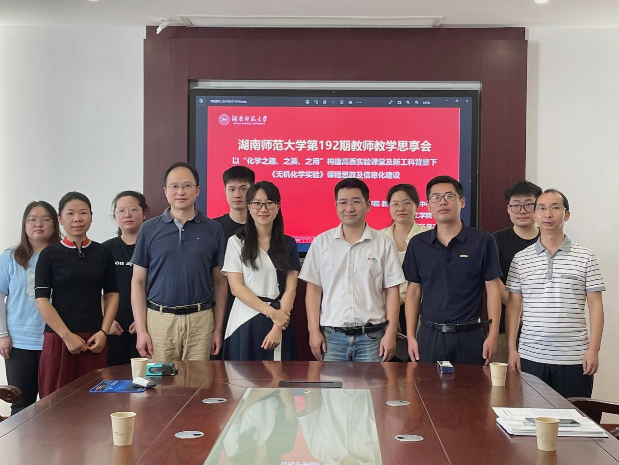 5月23日下午,化学化工学院在化学楼206会议室举办我校第192期教师教学思享会。此次思享会以“以“化学之趣、之美、之用”构建高质实验课堂及新工科背景下《无机化学实验》课程思政及信息化建设”为主题,由化学化工学院张效敏和彭馨两位老师主讲,易春旺教授主持。