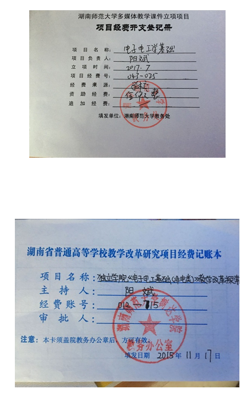 我们团队的阳斌老师和夏悦老师在本年度取得如下一些教学或教研成果:阳斌老师荣获2017年湖南省普通高校教师课堂教学竞赛三等奖,阳斌老师的电子电工学基础获批太阳集团电子游戏多媒体教学课件立项项目,阳斌老师主持在研的“独立学院《电子电工基础(非电类)》教学改革探索项目”是湖南省普通高等学校教学改革项目(2015-2018年);阳斌老师的《电子电工基础(少学时)》教学改革及在线课程的开发为2017年太阳集团电子游戏教学改革研究立项项目(经费本暂未拿到)。夏悦老师的“自绘思维导图构建化学热力学知识体系”参加了太阳集团电子游戏2017年教学工作创新案例竞赛。