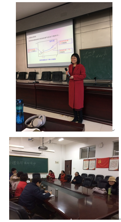上图为此次教研活动的记录。会后我们与湖南大学的余刚教授取得了联系,得到了余刚教授在物理化学年会所做讲座的视频资料。在明年的教研活动中我们将借鉴兄弟院校的一些好的做法,结合我们的实际情况,积极进行一些教学创新与改革尝试。 |