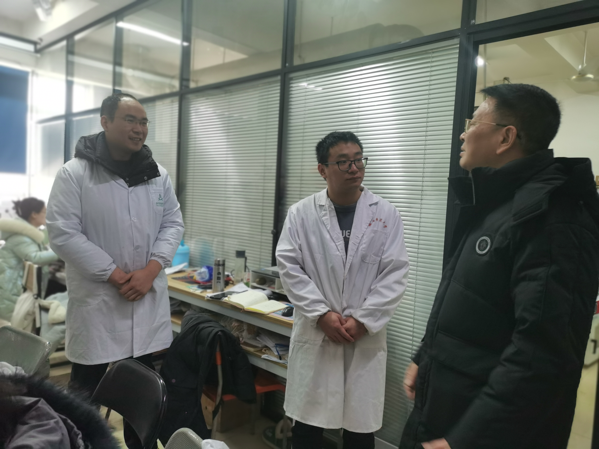 1月27日上午,化学化工学院党委书记谭东波带队进行全院安全检查,教育部重点实验室专职副主任周子虬随行。