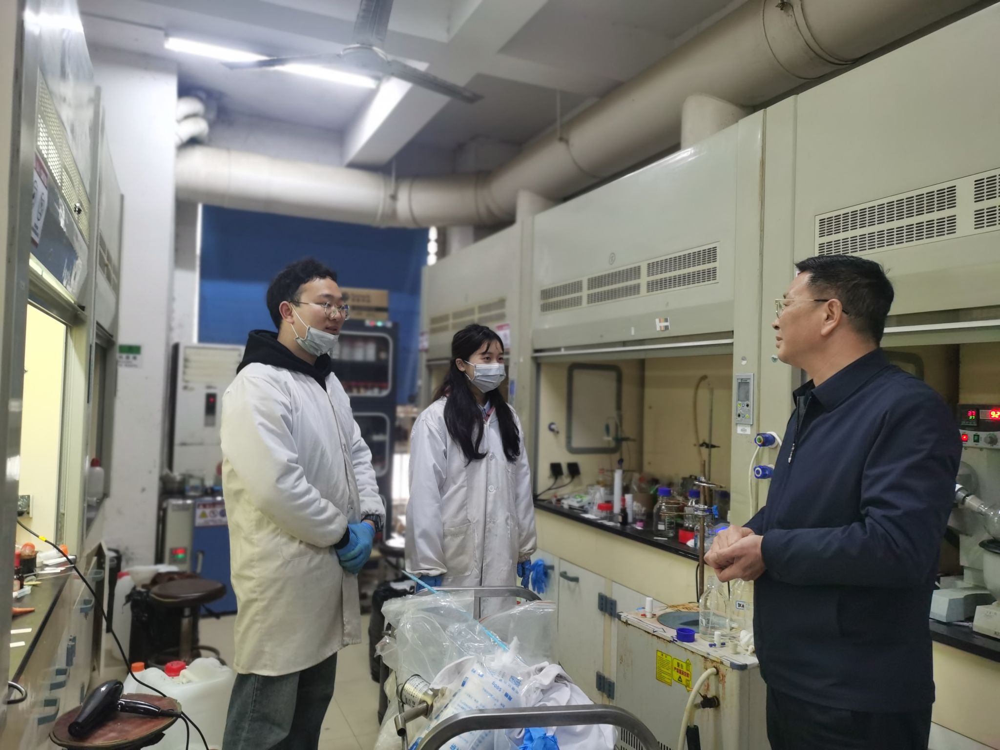 3月15日上午,化学化工学院进行全院安全检查,学院党委书记谭东波、副院长宋春红、教育部重点实验室专职副主任周子虬带队检查。