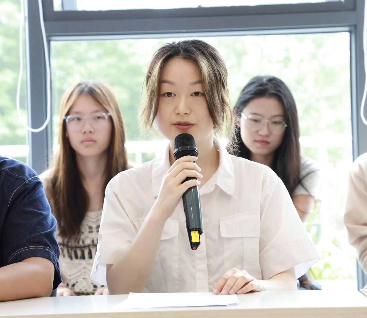 化学化工学院朱茜雨同学作为学生代表发言。她分享了自己参与基地从策划到落实全过程的感受,表示今后将积极进取、勇于创新,奋力书写为中国式现代化挺膺担当的青春篇章。