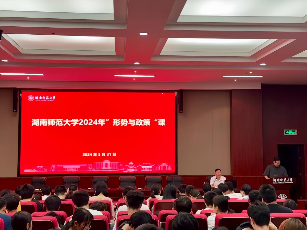 (通讯员 许佳慧 张晓晨)5月31日晚,学院党委书记谭东波以“全面推进中国式现代化面临的机遇和挑战”为题,为2023级本科生讲授形势与政策课。讲座由学生辅导员唐健清主持。