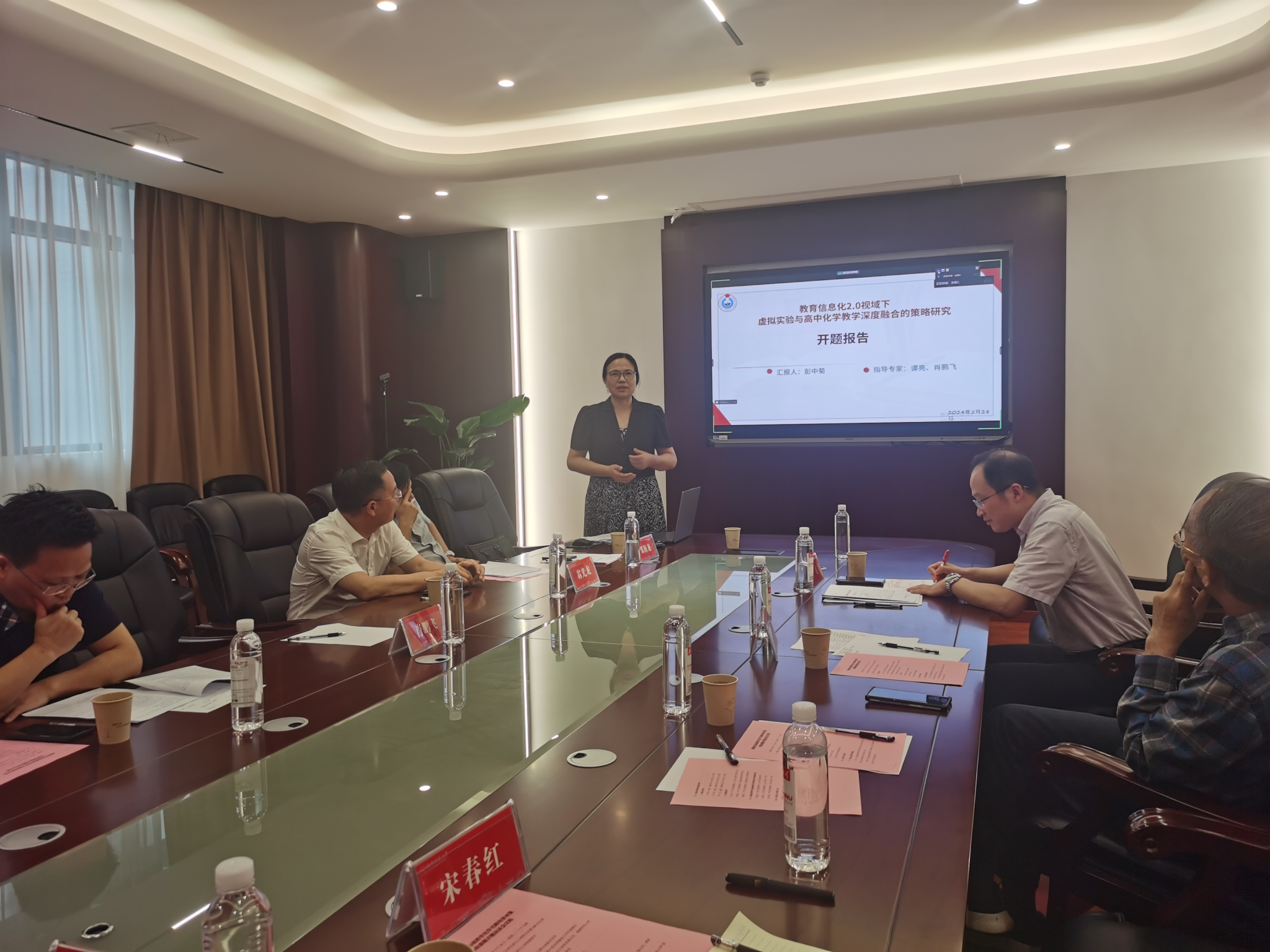 5月28日下午,由化学化工学院省级新时代基础教育名师基地培养的名师工作坊名师肖斌武、龙陆云和彭中菊三位老师的省级课题开题论证会在我院和广生物会议室206举行。湖南省教育管理干部培训办公室常务副主任、太阳集团电子游戏“国培计划”项目办主任康洪,湖南省教育管理干部培训办公室、太阳集团电子游戏“国培计划”项目办教学秘书陈甲元 ,化学化工学院院长杨荣华、党委书记谭东波、副院长宋春红出席会议,理论导师尹笃林、谭亮教授和实践导师翁光龙、邹海龙、肖鹏飞老师参加会议。会议由副院长谭亮主持。
