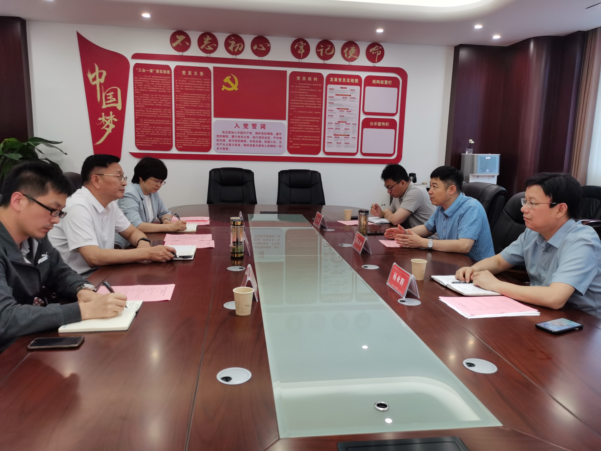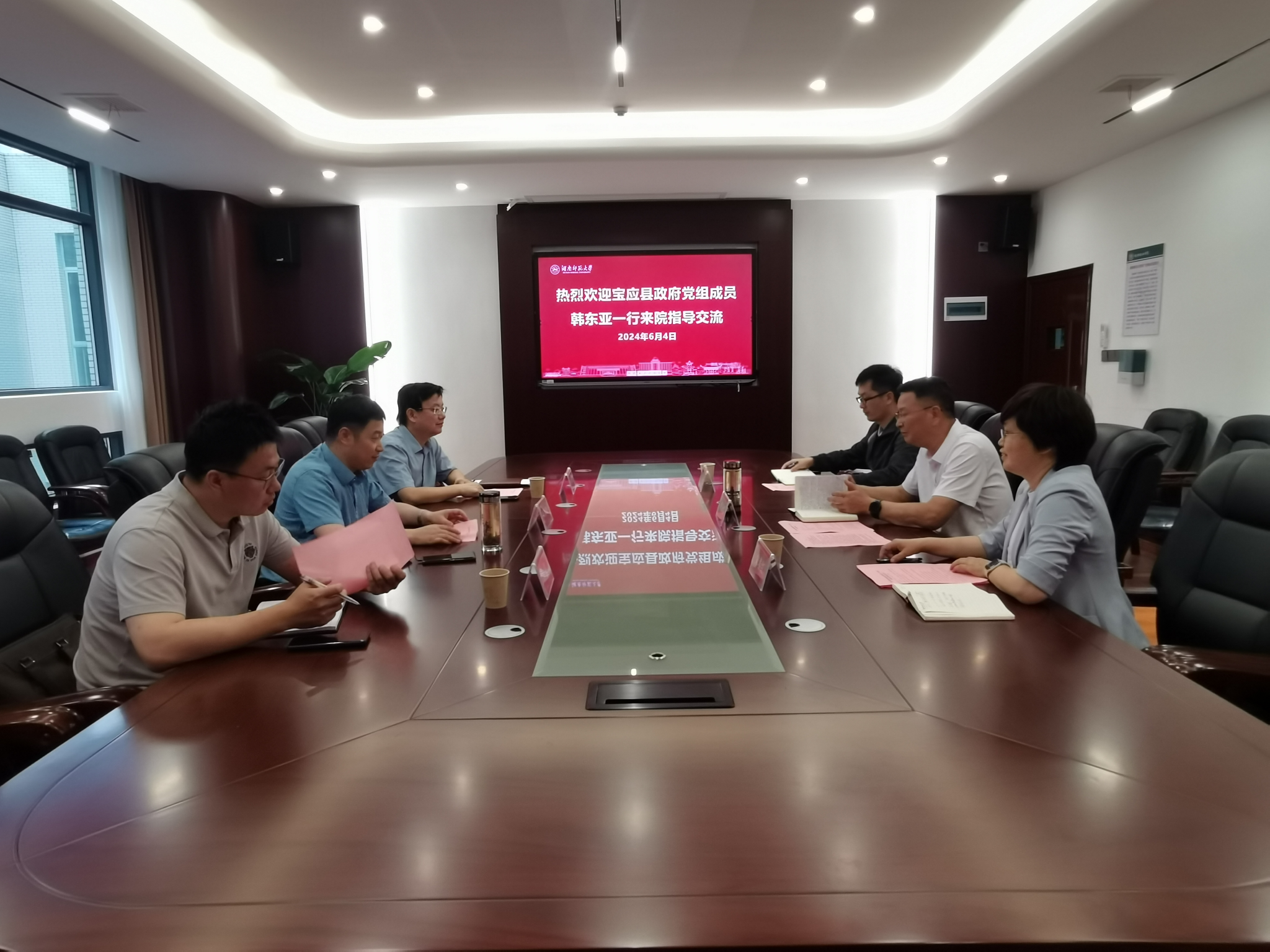 6月4日下午,宝应县政府党组成员、江苏省第16批科技镇长团扬州市电力装备产业团团长、中国(安徽)自由贸易试验区研究院执行院长韩东亚,宝应县机关事务管理服务中心综合管理科科长季超一行来我院交流,化学化工学院党委书记谭东波、副院长宋春红,教授杨亚辉、副教授江浩陪同交流,座谈会在化学化工学院和广生物会议室举行。