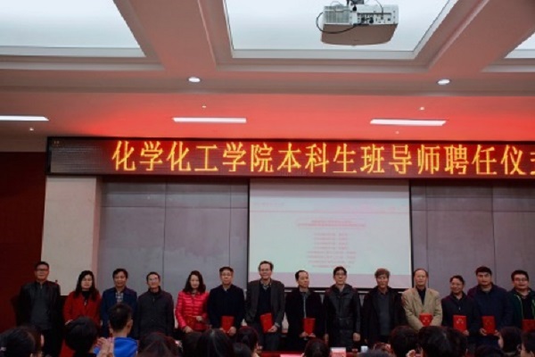 (通讯员 蔡铭 马娟)12月12日下午,化学化工学院本科生班导师聘任仪式在学院报告厅举行。化工院党委书记于风江,副院长宋建新、谭东波,工程实验室主任尹笃林,法学院副院长耿自强和全体班导师以及学工办老师出席此次仪式。仪式由谭东波主持。