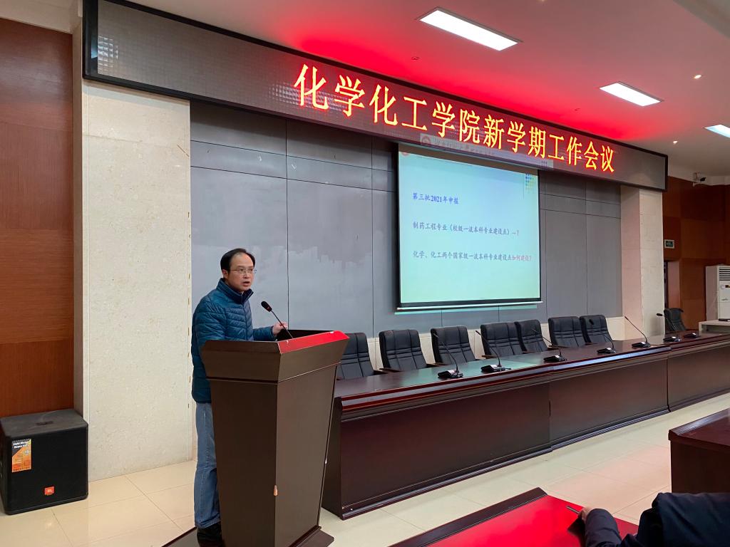 2021年3月4日下午,我院在化学楼报告厅召开了新学期工作会议。全体院领导出席此次会议,会议由党委书记于风江主持。