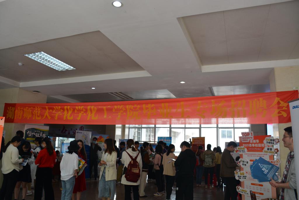 (通讯员 邓星罗兰)3月28日下午,化学化工学院在化工院大厅举办2021届毕业生春季专场双选会。院党委副书记罗艳和2017级辅导员付玉丽出席活动。北京高途云集教育科技股份有限公司等十余家公司参加了此次招聘会。