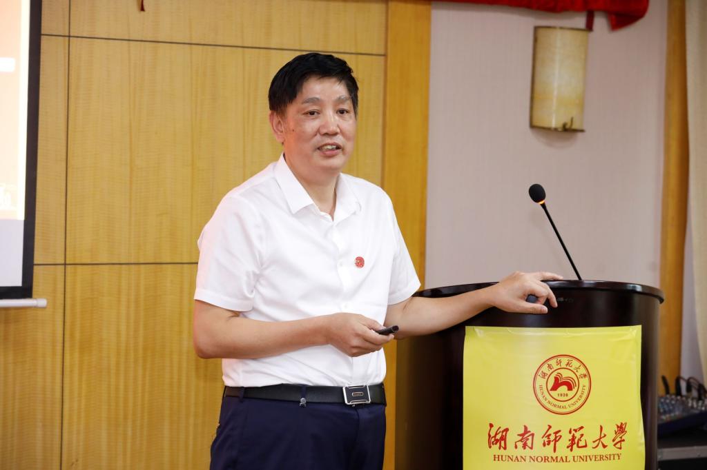 化学化工学院院长杨荣华从学院的基本情况、同类院校对比情况、学院“十四五”发展思路及工作重心三个方面做工作汇报。他真诚期盼各位专家为学院学科队伍建设、资源整合等方面提供战略咨询,为学院创新发展出谋划策。