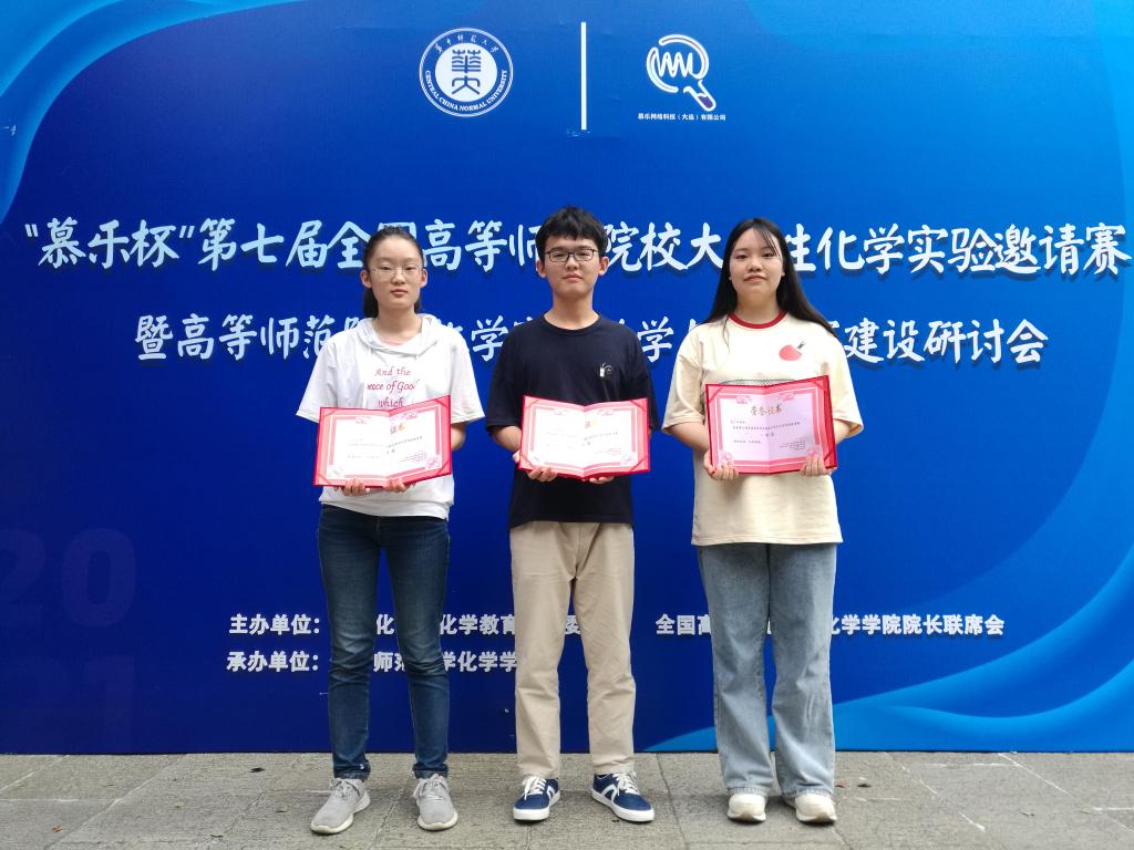 日前,在华中师范大学承办的“慕乐杯”第七届全国高等师范院校大学生化学实验邀请赛中,化学化工学院化学专业三名学子获得两个一等奖、一个二等奖的好成绩。