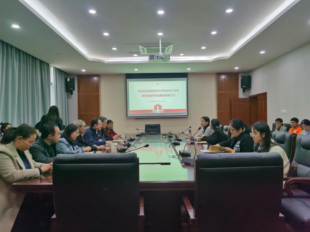 11月15日下午,化学化工学院副院长谭亮、化学系主任梁云、化学教育教研室主任耿淑玲、院教务办主任许华岚赴长沙市一中开展教育实习检查工作。学院实习指导老师汪萍、杨季冬以及实习队全体成员为检查工作做了充足准备。长沙市一中校长助理彭健、科创处主任钟文、化学组全体老师参加了本次工作。