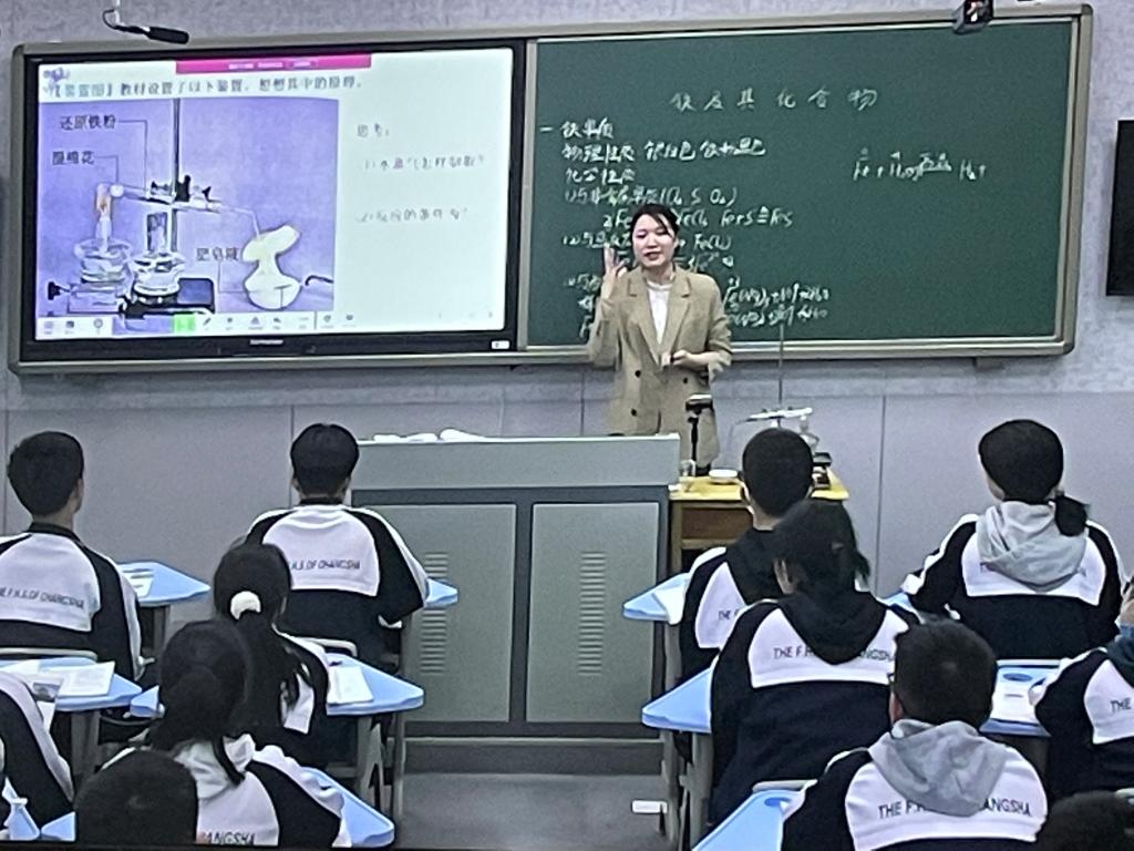 基于当前教育新理念,一中实习队夏萌萌讲授了“铁及其化合物”的公开课。从课堂导入到课堂的深入,从知识的讲解到实验探究的开展,师生互动充分,课堂上井然有序。课后,长沙市一中的老师以及学院老师对公开课进行了精彩的点评,对公开课给予了充分的肯定,也提出改进的建议。与学院有着多年合作的余敬忠老师指出“本堂课很符合新课改下高中化学的知识逻辑,在做实验题之前先弄清楚原理,然后再去思考,这堂课把原理摆在了第一位,并且非常详细的讲出了判断方法,是一个很大的亮点。”随后,梁云主任对实习队的工作进行了一个简单的总结,并提出了对剩下的实习时间内的期望和要求。长沙市一中彭健主任对实习队近一个月来的工作给予了充分的肯定,对实习队所做的工作给予了赞赏,并对化学化工学院各位领导老师的到来再次表示了欢迎。最后,谭亮副院长对本次考查工作做了总结,并感谢长沙市一中对学院工作的支持。本次工作在热烈的掌声下结束,参与人员都感触颇丰。