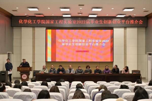 (通讯员 晏紫霖 陈瓶)12月27日15时,化学化工学院国家工程实验室2022届毕业生创新创业平台推介会于至善楼至善讲堂开展。会议由化工系系主任钟文周主持,尹笃林教授及化工院十一位老师出席,18级辅导员谢云霞及全体学生参加。