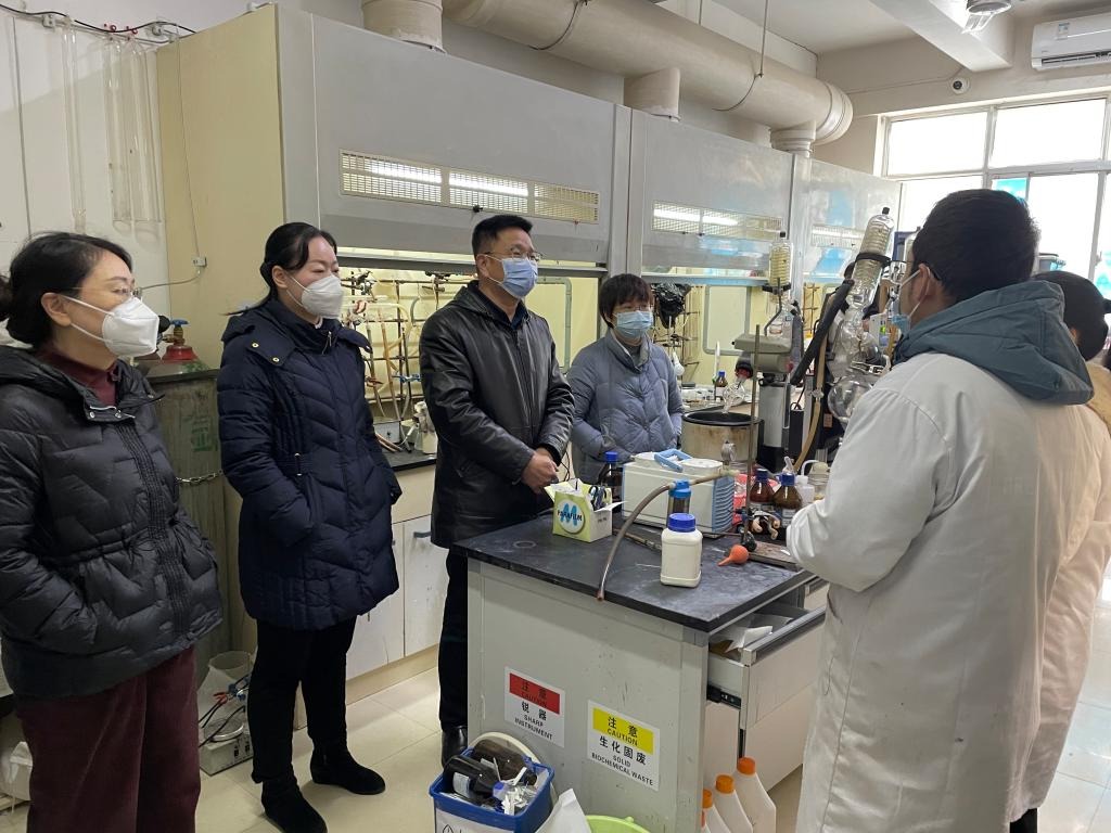为进一步筑牢安全防线,做好安全防范工作,12月2日,院党委书记谭东波、副院长宋春红、院党委副书记段婷、专职组织员梁艳芳等对化学楼实验室安全工作进行检查。