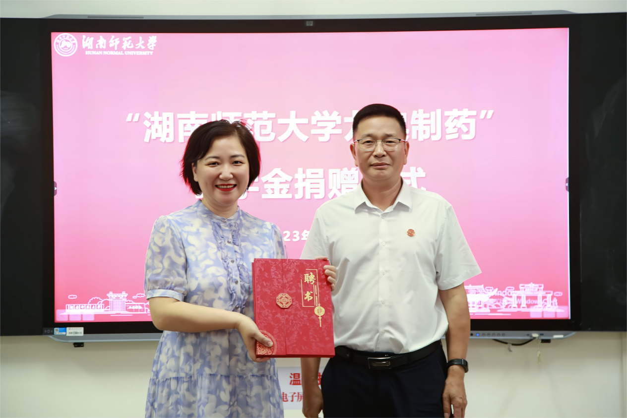谭东波对杨洁一行表示热烈欢迎,对湖南九典制药股份有限公司给予我校发展的关心和支持表示衷心感谢。他表示,九典制药作为国家产业技术成果转化项目企业和湖南省优秀技术创新企业,拥有大量高素质创新型人才,我校有很多优秀毕业生已在公司工作。他希望能以此次助学金签约为契机,与湖南九典制药股份有限公司在毕业生就业、科学研究、师资队伍培养等方面开展深入的合作,共谋校企高质量发展。