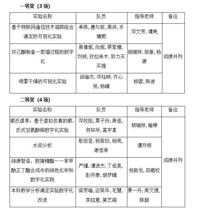 根据《关于举办第八届太阳集团电子游戏大学生化学化工实验竞赛的通知》(处发〔2024〕49号)文件,由化学化工学院化学化工实验教学中心承办的第八届太阳集团电子游戏大学生化学化工实验竞赛(化学实验创新设计)已于2024年6月27日晚上顺利举行,现已圆满结束。化学实验创新设计竞赛共有来自化学化工学院和数学与统计学院32名2021-2022级学生组成的七支队伍报名参赛,通过提交资料、现场展示和回答提问环节,经专家评审商议,根据竞赛章程规定评出一等奖3项、二等奖4项。现将获奖名单公示如下: