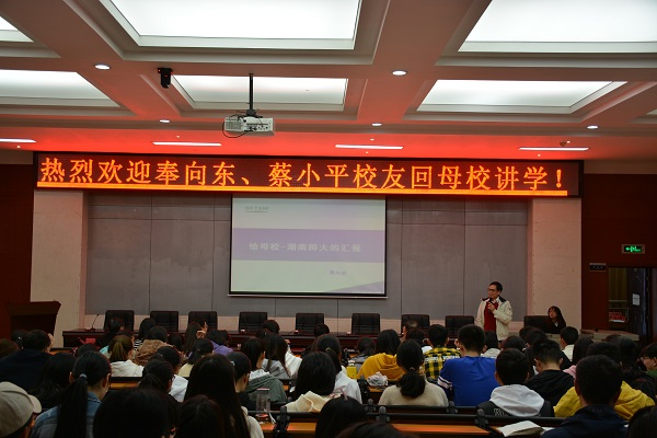 (通讯员 谭伟玲 程浩然)11月15日上午,化学化工学院著名校友奉向东、蔡小平在化工院报告厅开展讲座,此次讲座由国家地方联合工程实验室主任尹笃林教授主持。