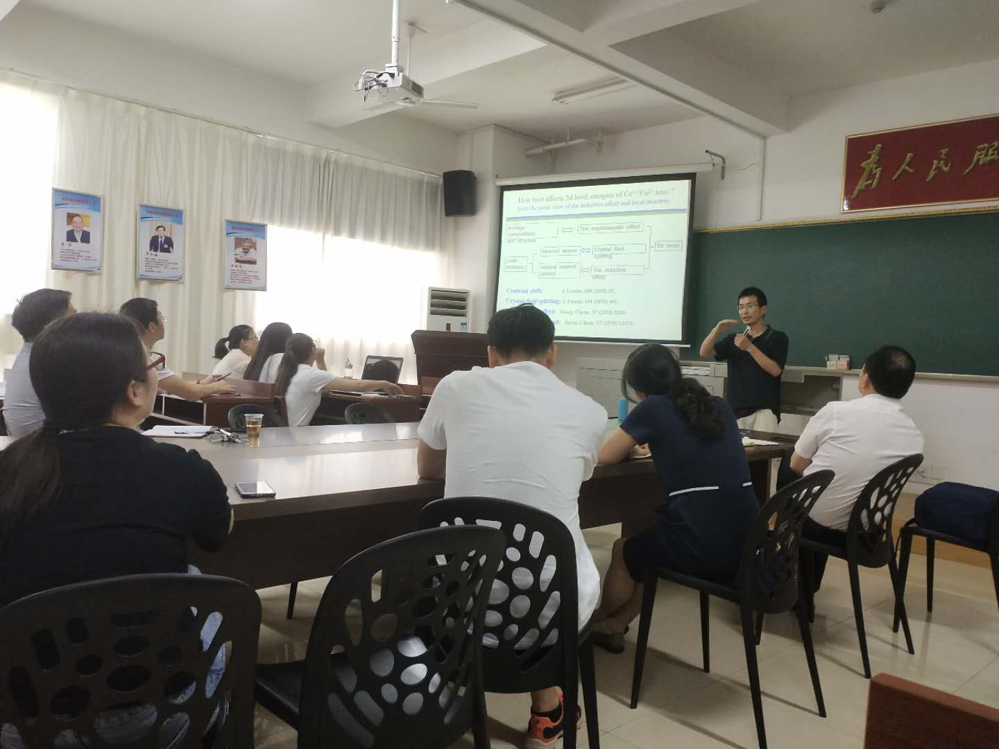 2019年07月03日(星期三)下午15:30,北京科技大学刘泉林教授做客化学化工学院,在新楼二楼222会议室为我院师生带来一场题为“白光LED用氮/氧化物发光材料研究”的学术报告。报告由我院廉世勋教授主持,化学化工学院部分老师、研究生聆听了此次报告。刘泉林教授任北京科技大学材料科学与工程学院教授、博士生导师,材料物理与化学系主任。1970年1月出生于山东垦利县,1998年于中科院物理研究所凝聚态物理专业获理学博士学位。中科院物理研究所助理研究员(1998- 2000年),副研究员(2000- 2005),北京科技大学教授(2005年-) 。期间,日本国家材料研究所STA研究员(2001.1-2003.1)和访问学者(2003.10- 2004.3)。目前研究方向为无机发光材料,主要围绕二价铕和三价铈掺杂的无机发光材料的设计与合成、结构调控与性能优化、以及光谱理论分析等科学问题开展研究工作。迄今已发表SCI学术论文180余篇,论文被引用4000多次。2004年获北京市科学技术(基)壹等奖,2006年获教育部“新世纪优秀人才支持计划”。本次报告正是对这部分工作的内容进行了详细的介绍。报告的内容对我院相关课题组的工作有很大的指导性作用,对同学们的科研之路也有很大的启发作用。报告结束后,师生们的反应热烈,同时踊跃地提出了自己的一些疑问和看法,刘教授耐心仔细地逐一解答,获得了在座听众的阵阵掌声。会后,刘教授与我院师生合影留念。