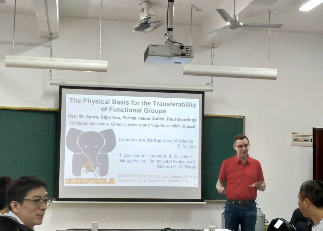 2018年5月24日上午10:00加拿大McMaster大学Paul W. Ayers在化工院206会议室为我院师生带来一场题为“The Physical Basis for the Transferability of Functional Groups”的学术报告。报告由我院副院长宋建新教授主持,宋建新教授简要介绍了Paul W.的研究领域和学术成果。参与本次报告的有化工院部分师生。